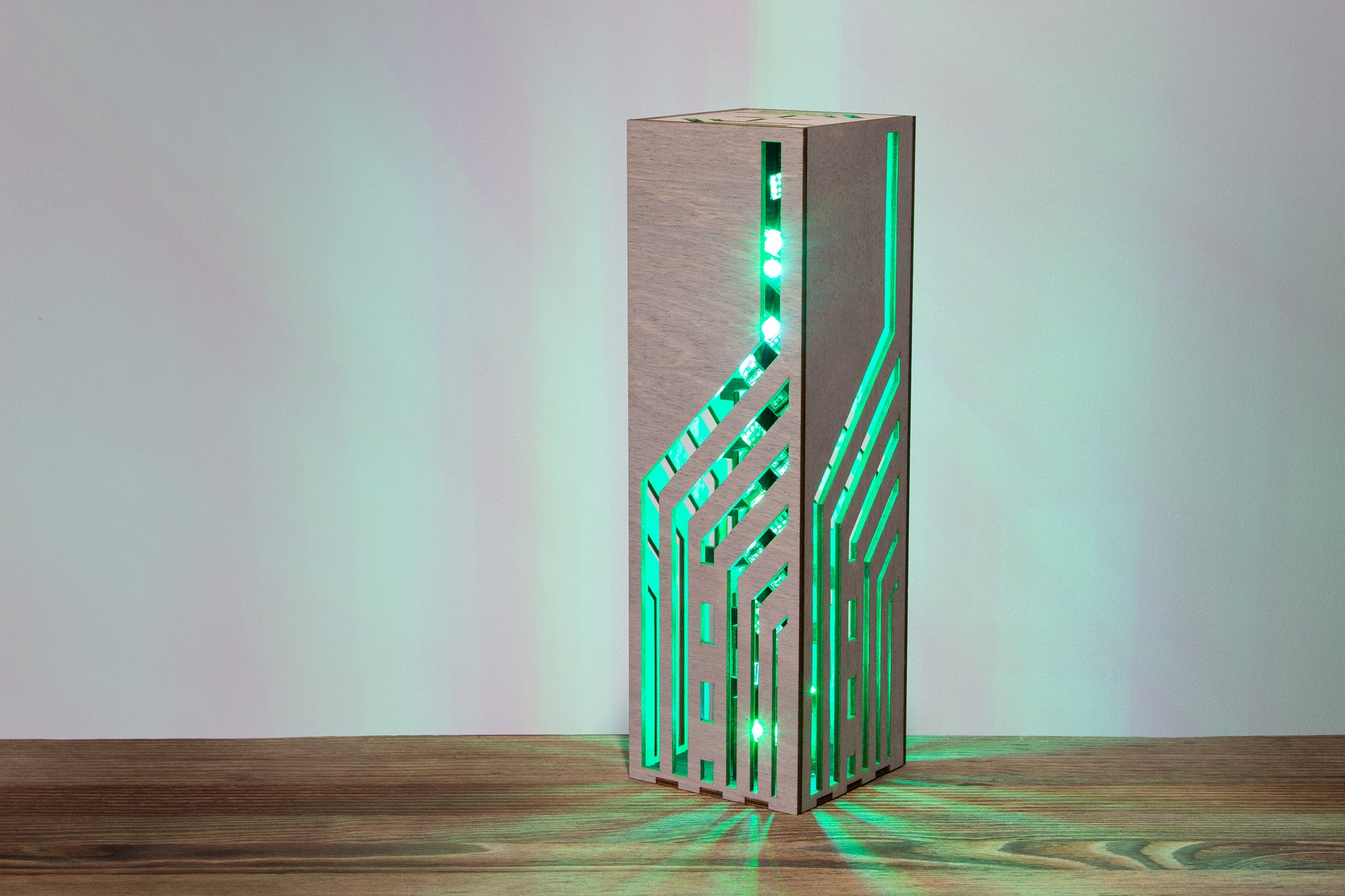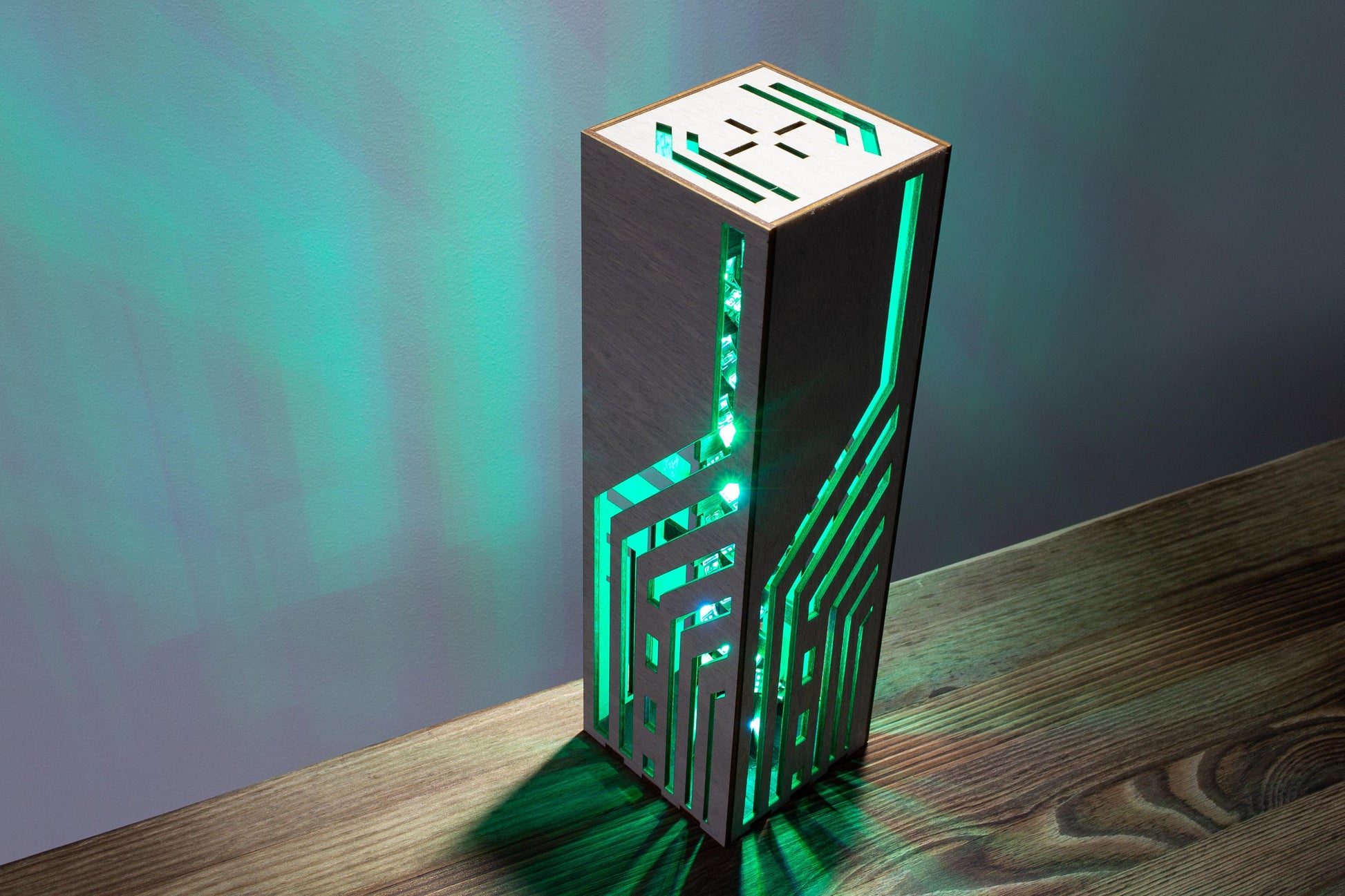 Design of this futuristic desk/night lamp is inspired by cyberpunk style and neon light warmth. Perfect way to add modern accents in any place at your home. Can be easily used as a night lamp, just regulate brightness to comfort level. Use an LED controller to choose the mode and colors that you like most.